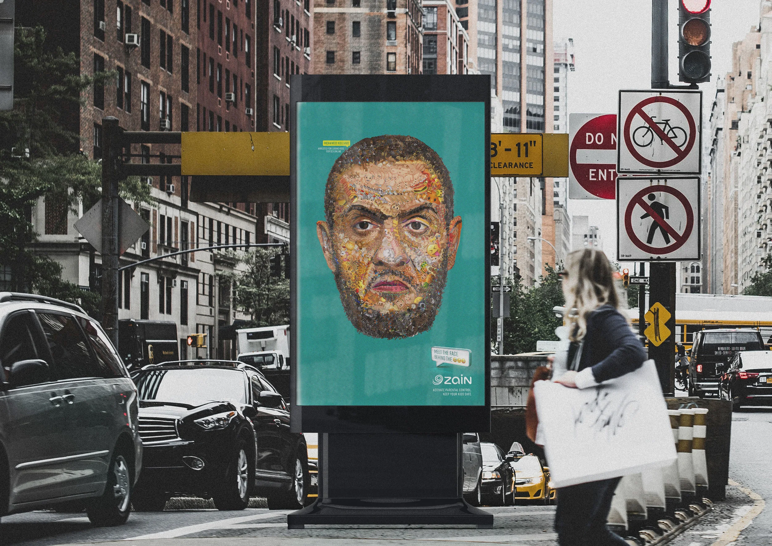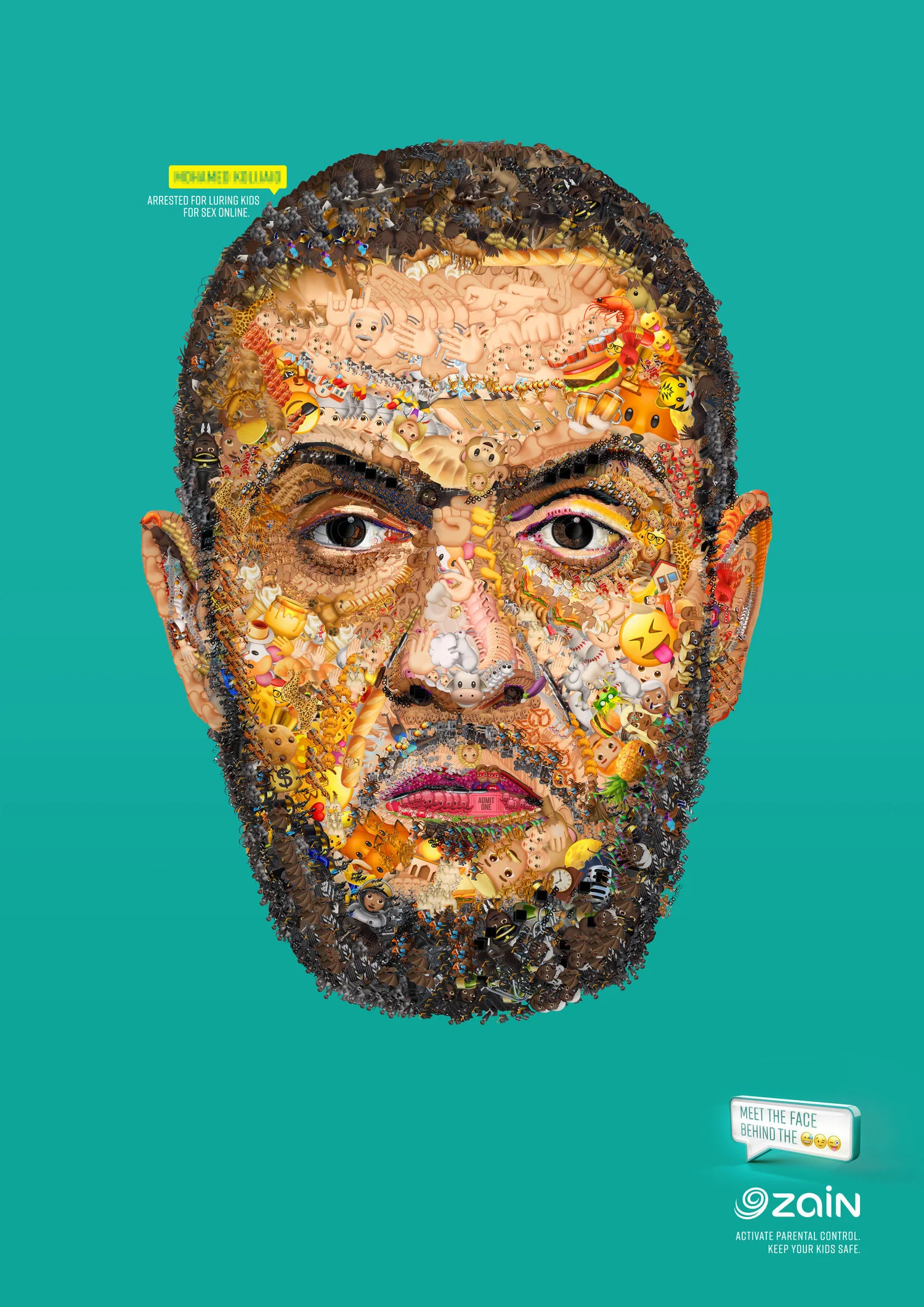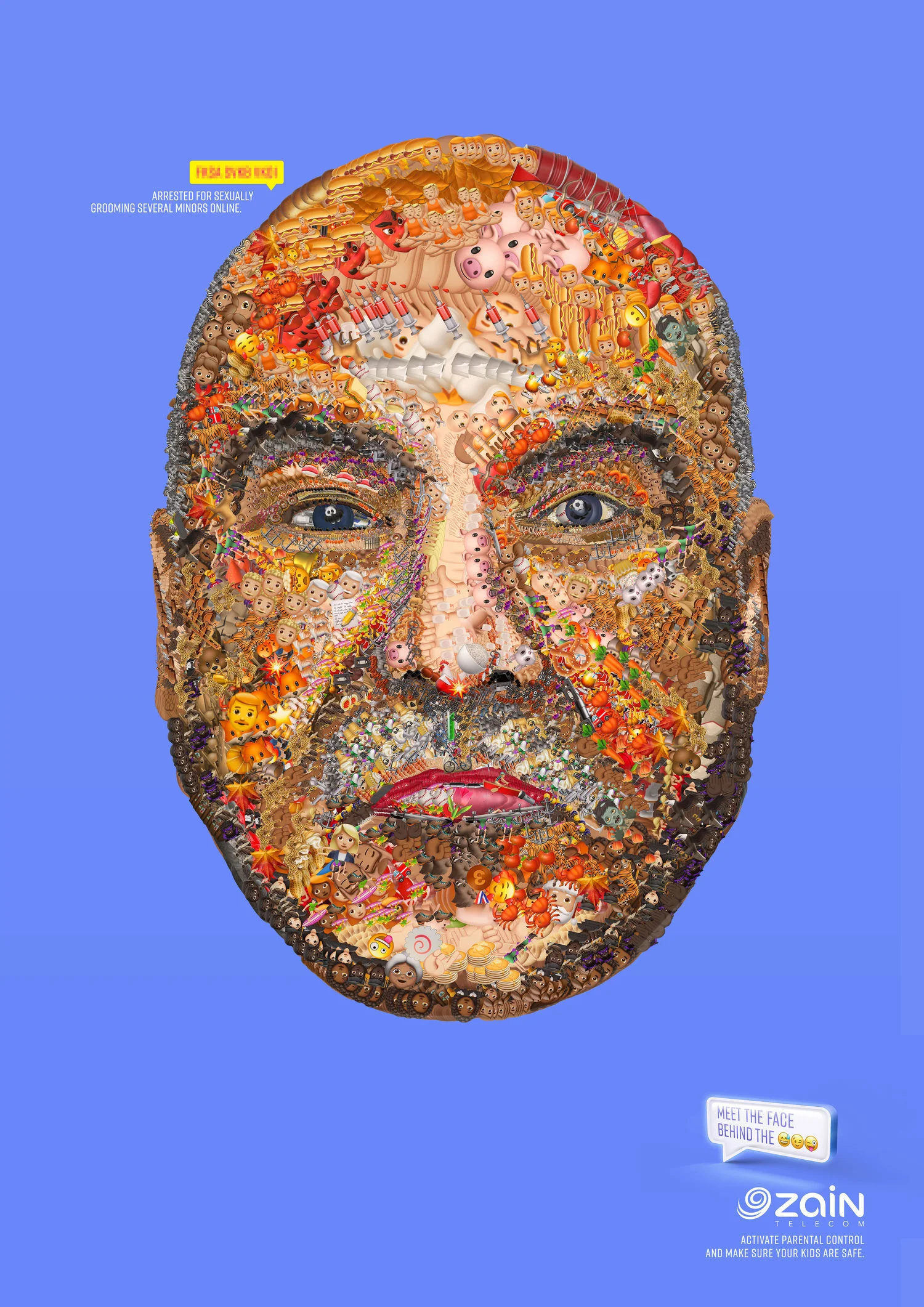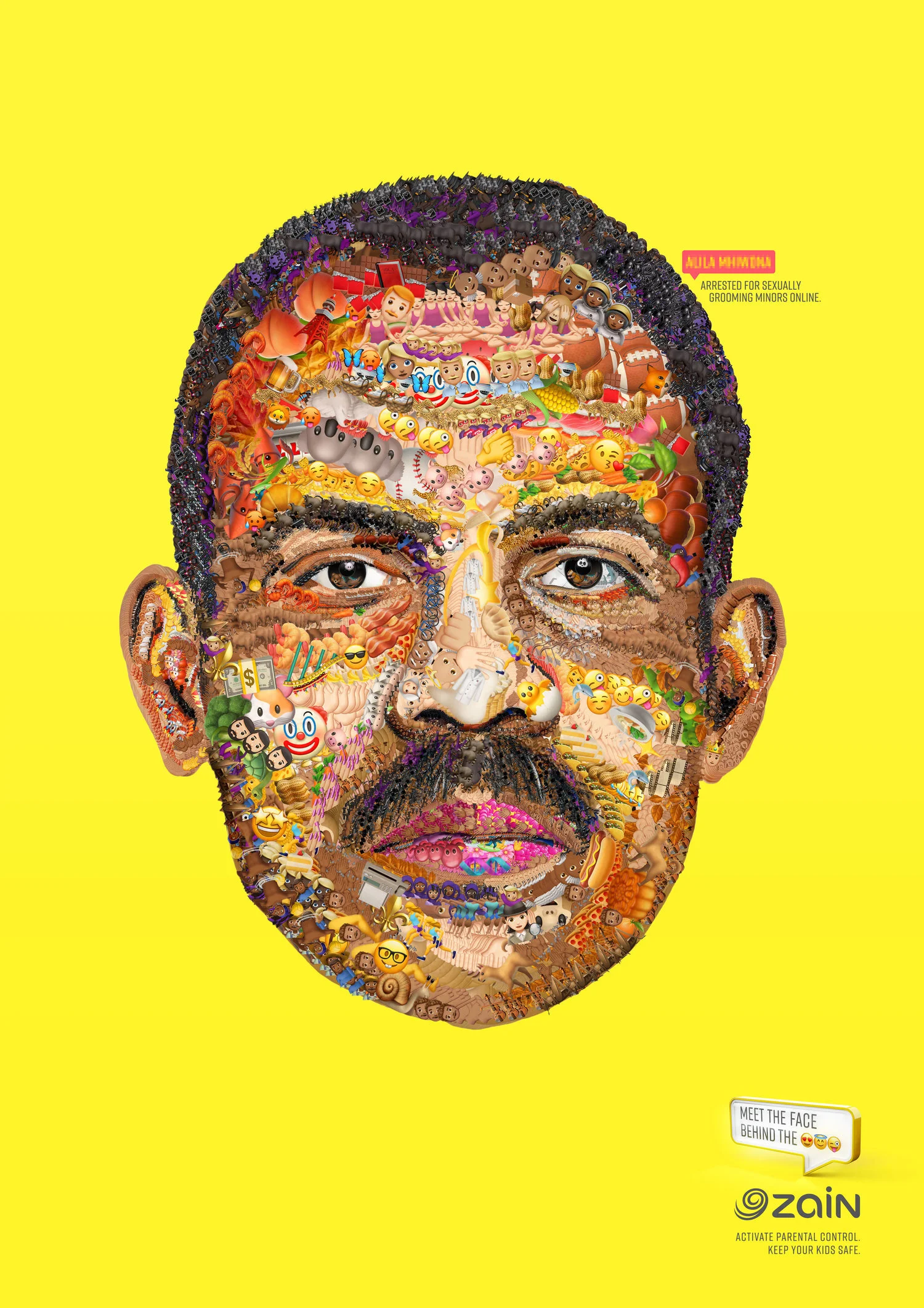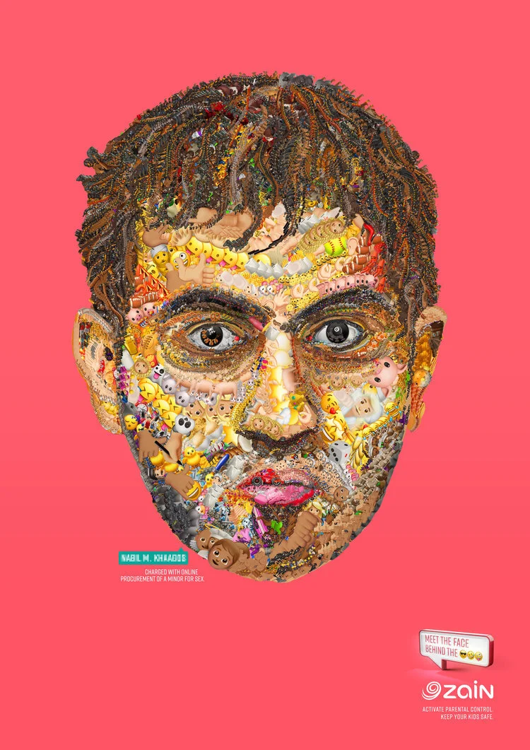 To communicate Zain’s parental control, we used the emojis used by sex offenders to bypass legislation and reveal something they never want us to see: their real faces.
